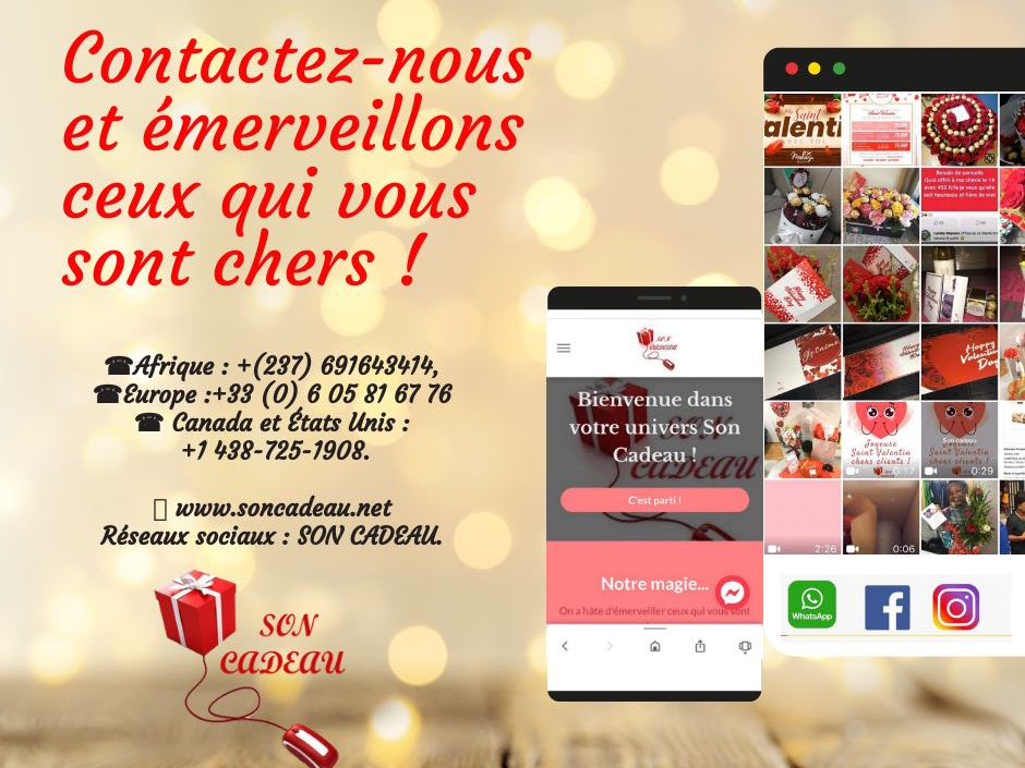 « Promptitude et patience mixed up!!! Prompt dans l'exécution/ l'action avec effet garanti, et patient dans l'écoute et le désir du client. J'ai eu à faire appel à SonCadeau à 3 reprises déjà, et à chaque fois, le déjà-vu est inexistant, mais laisse place à l'innovation malgré un court délai. Un service de qualité, presque 24/7; encore merci la Team🔥🔥🔥👍🏾#SonCadeau, The efficient way...»